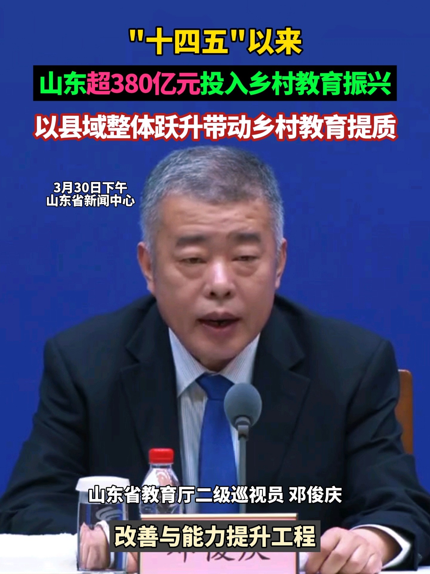 “十四五”以来,山东超380亿元投入乡村教育振兴,以县域整体跃升带动乡村教育提质