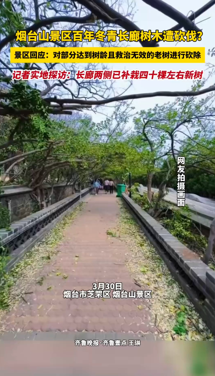 果然视频|烟台山冬青长廊树木被砍伐是咋回事?记者实地探访齐鲁晚报·齐鲁壹点客户端 昨天20:55原创近日,有网友发布烟台山景区百年冬青长廊树木被砍伐的视频,引发广泛关注,不少烟台网友深感惋惜。百年冬青长廊命运究竟如何?3月30日,记者来到烟台山景区现场探访。探访发现,冬青长廊的树木并没有大面积消失,长廊两边补栽了新树,工作人员正在对新树进行修剪。 (齐鲁晚报·齐鲁壹点 王琳)