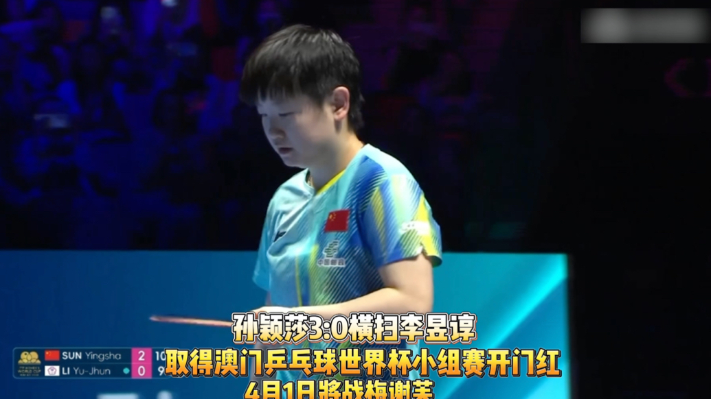 果然视频|孙颖莎3:0横扫李昱谆,取得澳门乒乓球世界杯开门红齐鲁壹点 | 昨天21:46 原创齐鲁晚报·齐鲁壹点客户端 微信扫码扫码下载客户端3月30日晚,2026澳门乒乓球世界杯女单小组赛第一轮,孙颖莎3:0横扫李昱谆,取得开门红。(齐鲁晚报·齐鲁壹点 怀晓)
