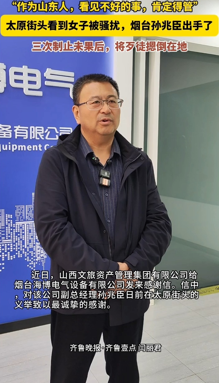 果然视频|烟台孙兆臣太原见义勇为:山东人看见不好的事肯定得管齐鲁晚报·齐鲁壹点客户端 08:24原创日前,烟台孙兆臣在太原街头路遇女子被尾随骚扰,三次制止未果后,将歹徒摁倒在地。3月30日,记者采访孙兆臣时,谈到当时挺身而出的一幕,他说,“作为山东人,看见不好的事,肯定得管!”(齐鲁晚报·齐鲁壹点 闫丽君)