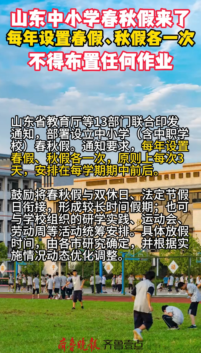 山东中小学春秋假来了,春秋假期间不得布置作业