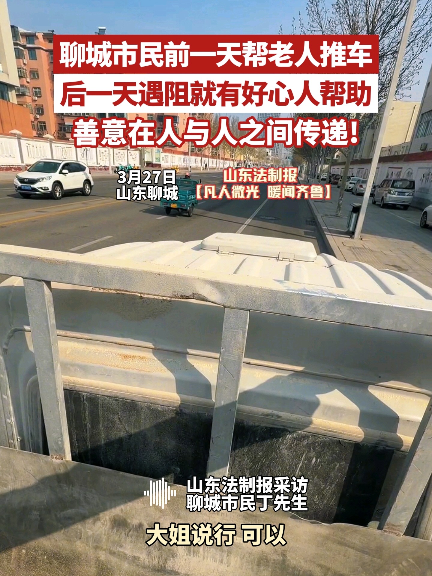 聊城市民前一天帮老人推车,后一天遇阻就有好心人帮助,善意在人与人之间传递!山东法制报 | 18:23 原创山东法制报 微信扫码扫码下载客户端善意在人与人之间传递!3月26日,聊城市民丁先生骑车时,看到一位拉着废纸箱的大娘上坡吃力,便主动上前用脚蹬着帮忙推车。第二天,他从店里骑车去菜市场买菜,返程时车胎突然爆胎。正当他犯难时,一位开小货车的大姐伸出援手,连人带车将他送回了店里。丁先生感慨:“这就是因果吧。”(大众新闻·山东法制报记者 羊文智)