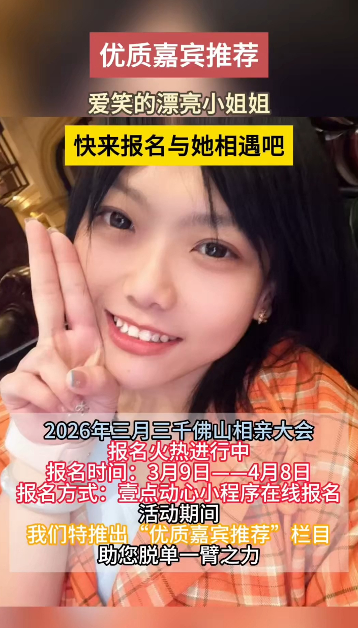 优质嘉宾推荐|性格开朗随和!爱笑的她与你相约千佛山相亲会大众报业·齐鲁壹点 15:00(齐鲁晚报·齐鲁壹点 赵长春 实习生 李家榕 于雅雯)第20届三月三千佛山相亲大会报名火热进行中,报名截止至4月8日!活动举办时间为4月17日-20日,地点在济南千佛山风景区东门内广场。为了让您的缘分加速抵达,活动期间,我们特推出“壹点动心·优质嘉宾推荐”互动栏目,每天为您优中选优,助您脱单一臂之力!