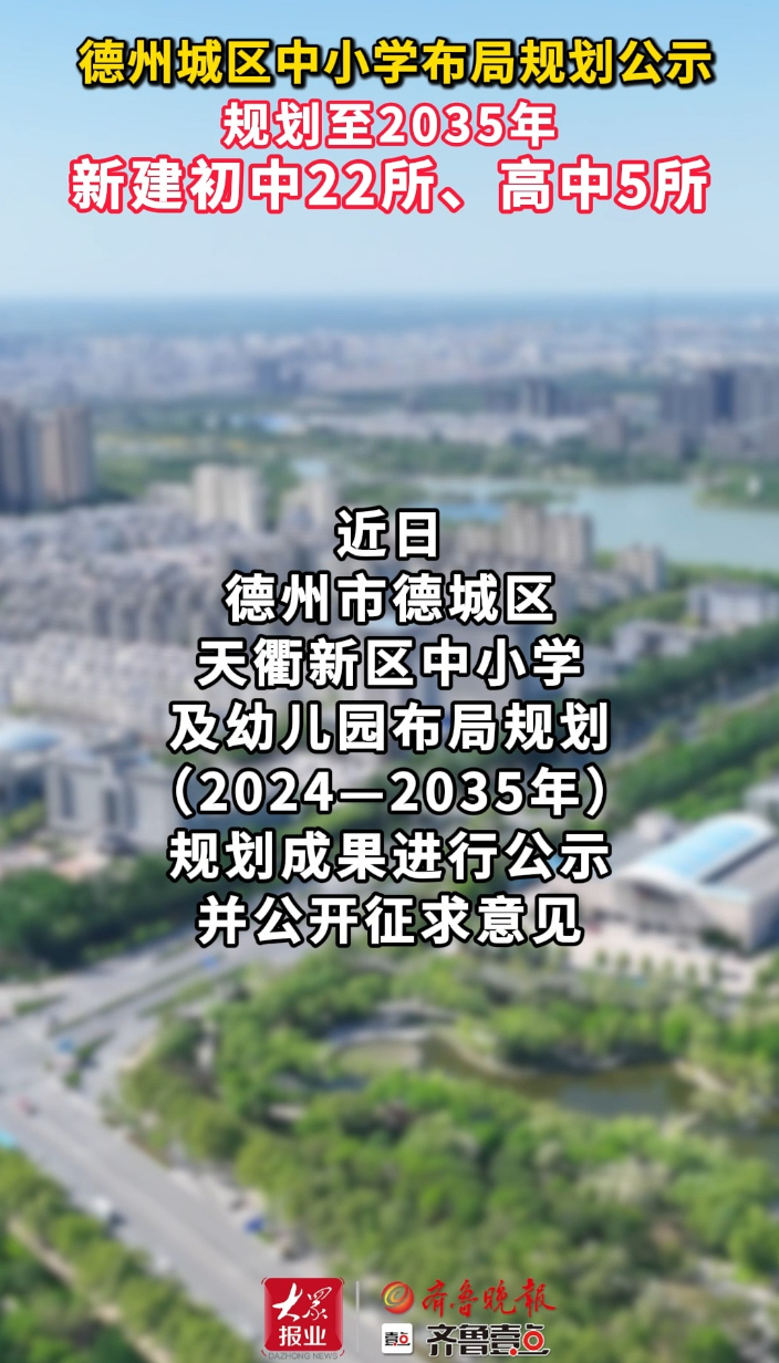 果然视频∣德州城区中小学布局规划公示:未来新建初中22所齐鲁晚报·齐鲁壹点客户端 17:21原创近日,德州市德城区、天衢新区中小学及幼儿园布局规划(2024—2035年)规划成果进行公示:规划至2035年新建初中22所、高中5所。(齐鲁晚报·齐鲁壹点 马雪平)