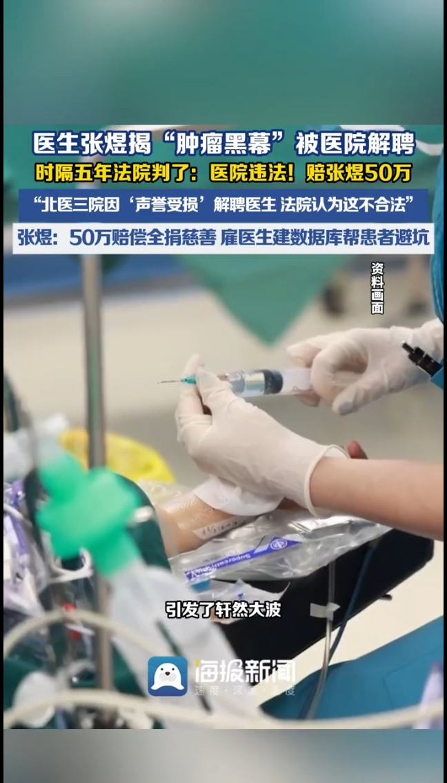 主播说 | 医生张煜揭“肿瘤黑幕”被医院解聘,时隔五年法院判了:医院违法!赔张煜50万