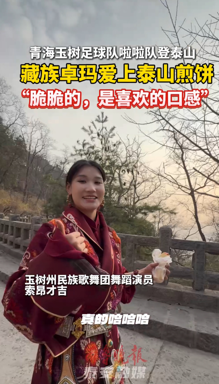 果然视频|青海玉树足球队啦啦队登泰山,藏族卓玛爱上泰山煎饼,“脆脆的,是喜欢的口感”齐鲁晚报·齐鲁壹点客户端 19:48原创齐鲁晚报·齐鲁壹点 李增浩 徐慧 3月31日,青海玉树足球队啦啦队登泰山,藏族卓玛爱上泰山煎饼,“脆脆的,是喜欢的口感”。