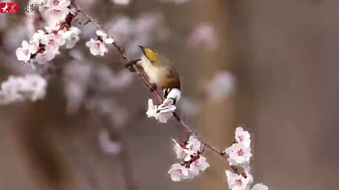 春天是啥味道?请问杏枝上的这只小鸟 19:42 原创大众新闻·大众日报 微信扫码扫码下载客户端金乡县金济河畔,春风漫过枝头,杏花悄然绽放,一只灵动的小鸟翩然落于花枝。黑白羽冠醒目亮眼,黄绿羽翼轻缀繁花,它低头轻啄花蕊,把春日的生机揉进镜头里。粉白花瓣与鲜活小鸟相映成趣,将春天的温柔与鲜活展现得淋漓尽致,每一帧都藏着独属于春日的浪漫与治愈。 (大众新闻记者 王浩奇 通讯员 季春艳 方建兵 剪辑 张颖)