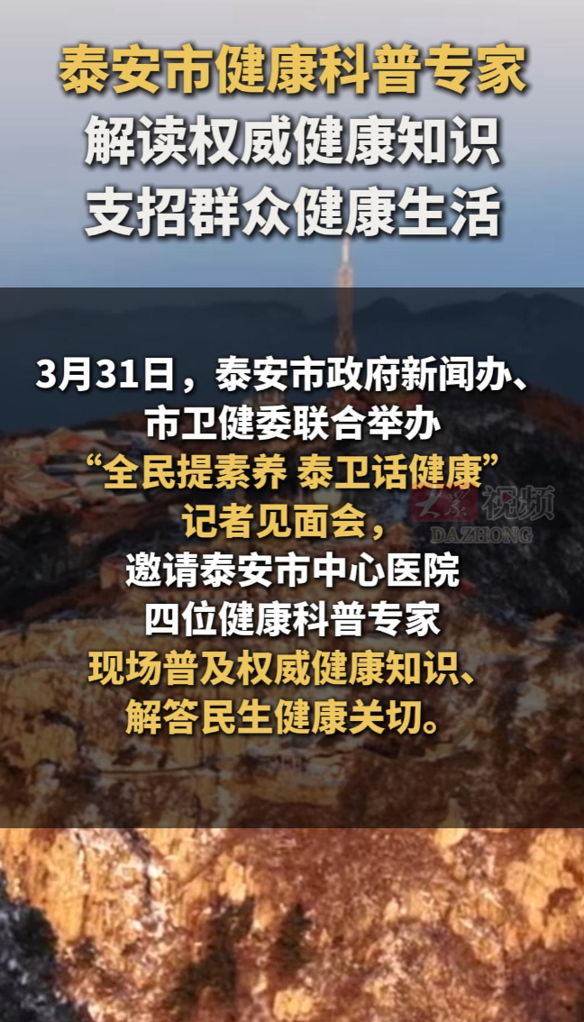 3月31日,泰安市政府新闻办、市卫健委联合举办“全民提素养 泰卫话健康”记者见面会,邀请泰安市中心医院四位健康科普专家现场普及权威健康知识、解答民生健康关切。