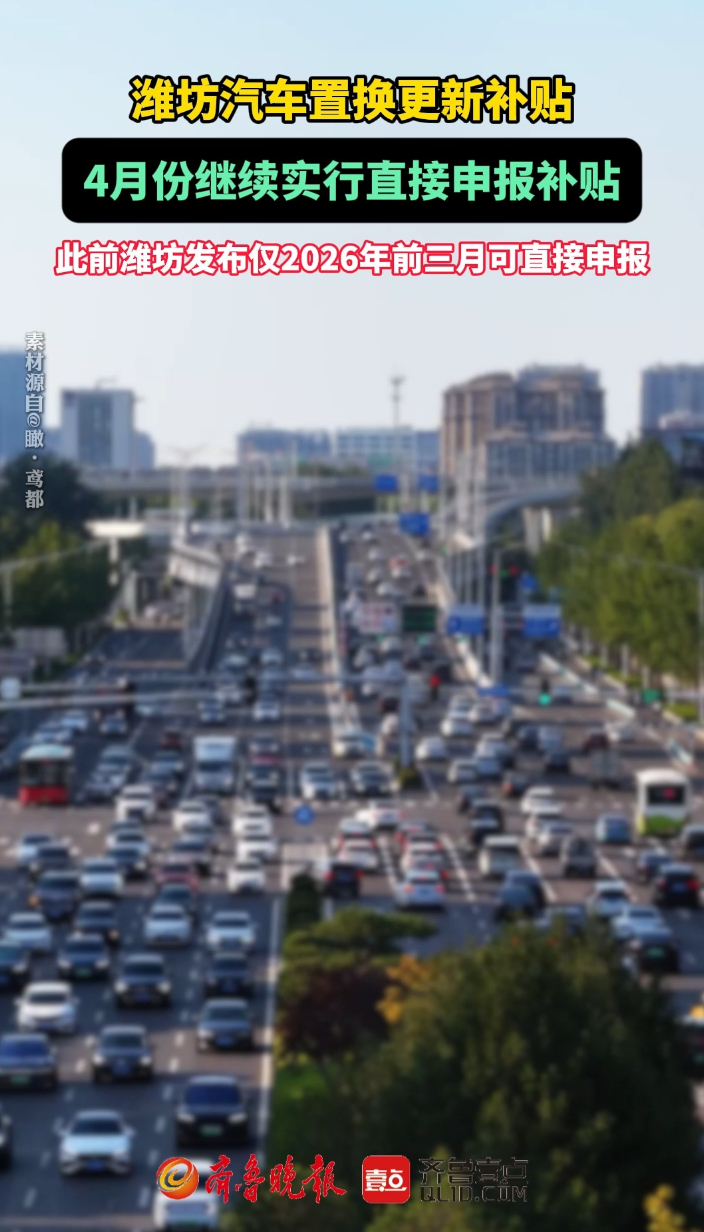 果然视频|潍坊4月继续实行汽车置换更新补贴直接申报大众报业·齐鲁壹点 21:373月31日,潍坊市商务局发布公告称,为更好保障汽车以旧换新消费需求,进一步优化补贴申报流程,经研究决定,潍坊市2026年汽车报废更新、汽车置换更新补贴自4月1日起继续实行直接申报补贴。在此期间,符合补贴条件的个人消费者购买新乘用车(以发票开具地为潍坊市的新车《机动车销售统一发票》为准),无需申请补贴资格,可直接申报补贴。后续将根据以旧换新工作进度和资金使用情况适时调整。 齐鲁晚报·齐鲁壹点 田思敏