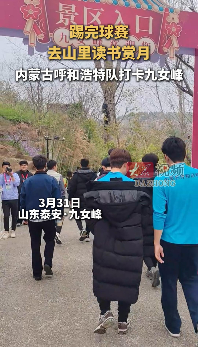 3月31日下午,春日的岱岳区九女峰景区,山色空蒙,草木葳蕤,迎来了一群远道而来的特殊客人——他们是前来参加2026年CMG群众足球邀请赛的内蒙古呼和浩特队。本次赛事中,呼和浩特队30日2:1战胜青海玉树,斩获小组赛首胜。受当地文旅部门邀请,队员们暂别绿茵场的紧张与喧嚣,走进这片诗意栖居的山野,休整备战后续排位赛。一行人信步登上九女峰书房,在群山环抱中感受书香与自然的交融;随后,他们沉浸于《故乡的月》演出,在光影交错间体味乡愁的悠远与温情。队员张育铭站在山间,神情舒展,语气中满是欣喜:“能在紧张的比赛之余,欣赏到泰安的好山好水,真是太高兴了!”此刻,体育与文旅相遇,激情与诗意并存,成为这个春日里最动人的注脚。