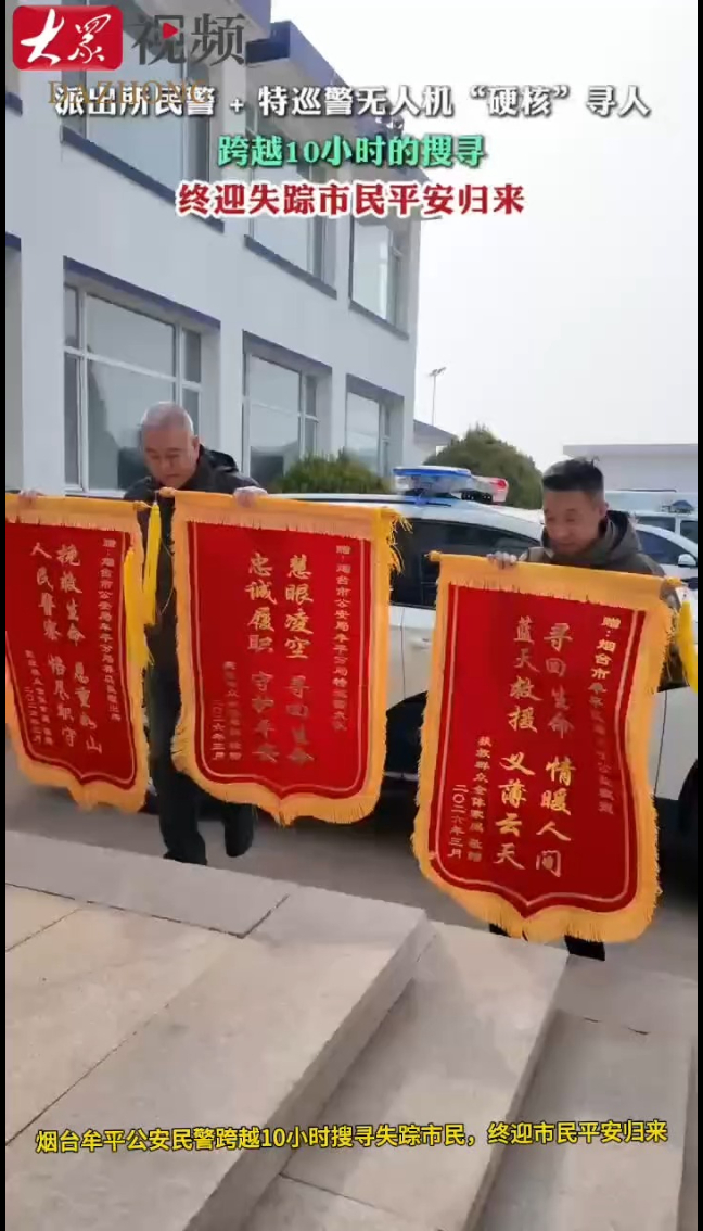 有一种安全感叫在山东!派出所民警+特巡警无人机10小时“硬核”寻人大众新闻 | 12:09 原创大众新闻 微信扫码扫码下载客户端近日,烟台牟平公安民警跨越10小时搜寻失踪市民,终迎市民平安归来!(大众新闻记者 杨秀萍)