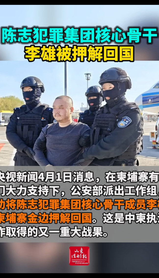 陈志犯罪集团核心骨干李雄被押解回国山东法制报 | 17:52 大众新闻·山东法制报 微信扫码扫码下载客户端据央视新闻4月1日消息,在柬埔寨有关部门大力支持下,公安部派出工作组,成功将陈志犯罪集团核心骨干成员李雄从柬埔寨金边押解回国。这是中柬执法合作取得的又一重大战果。经查,李雄曾任太子集团旗下汇旺集团董事长,涉嫌开设赌场、诈骗、非法经营、掩饰隐瞒犯罪所得等多项犯罪。目前,李雄已被依法采取强制措施,相关案件正在进一步侦办中。