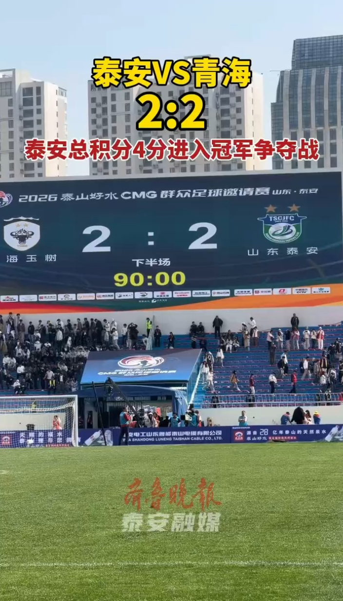 齐鲁晚报·齐鲁壹点 郭健 徐慧 泰安VS青海2:2,泰安总积分4分进入冠军争夺战。