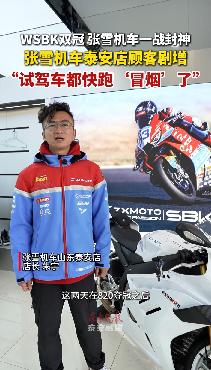 果然视频丨WSBK双冠 张雪机车一战封神,张雪机车泰安店顾客剧增,“试驾车都快跑‘冒烟’了”齐鲁晚报·齐鲁壹点客户端 17:02原创齐鲁晚报·齐鲁壹点 李增浩 薛小东 在3月29日结束的世界超级摩托车锦标赛(WSBK)葡萄牙站WorldSSP组别中,国产摩托车张雪机车在该站赛事双回合正赛中相继夺冠。 4月1日,齐鲁晚报·齐鲁壹点实地探访张雪机车泰安门店,该店店长表示,张雪机车荣获WSBK赛事冠军以来,进店顾客明显增加。