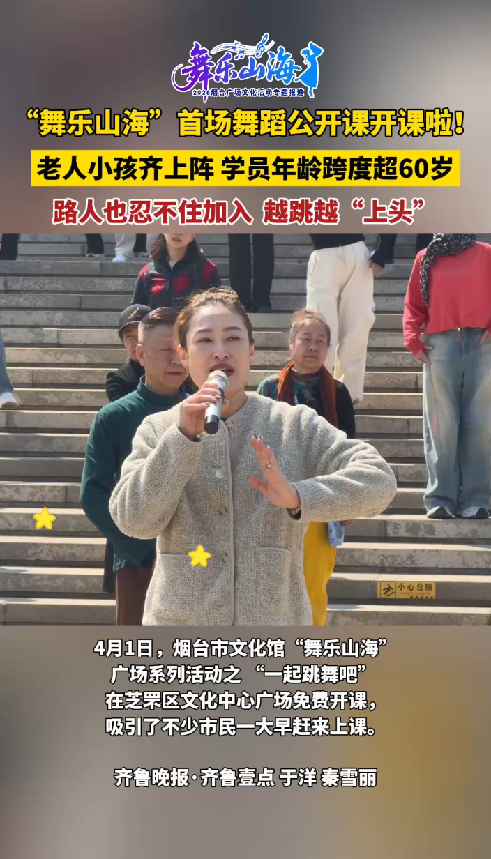 果然视频 | “舞乐山海”首场舞蹈公开课开讲,吸引路人一起舞齐鲁晚报·齐鲁壹点客户端 21:12原创4月1日,“舞乐山海”首场舞蹈公开课火热开课!老人小孩齐上阵听课,学员年龄跨度超60岁,路人也忍不住加入,越跳越“上头”!(齐鲁晚报·齐鲁壹点 于洋 秦雪丽)