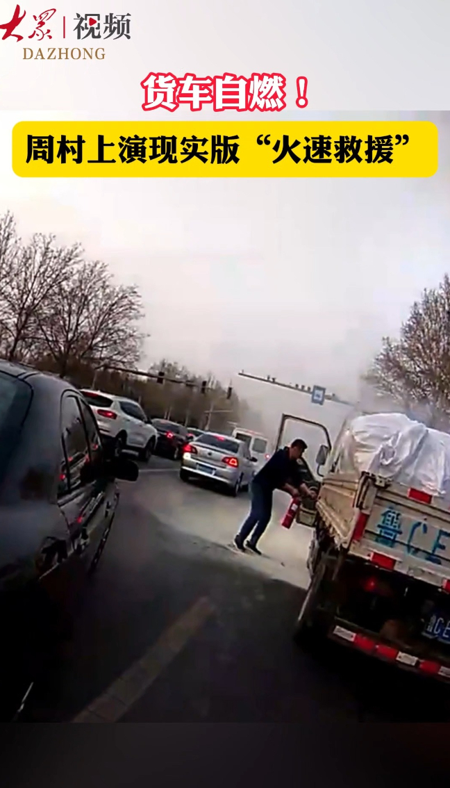货车自燃!周村上演现实版“火速救援”大众新闻·大众日报 13:43原创3月28日下午,淄博市周村区正阳路新建路路口南侧,一辆装载纸箱与木质家具的蓝牌货车突发自燃。危急时刻,两名交警及时赶到,与货车司机、洒水车及消防力量携手,展开一场紧张的灭火接力。(大众新闻记者 杨淑栋 通讯员 吴文玉 朱秦霄)