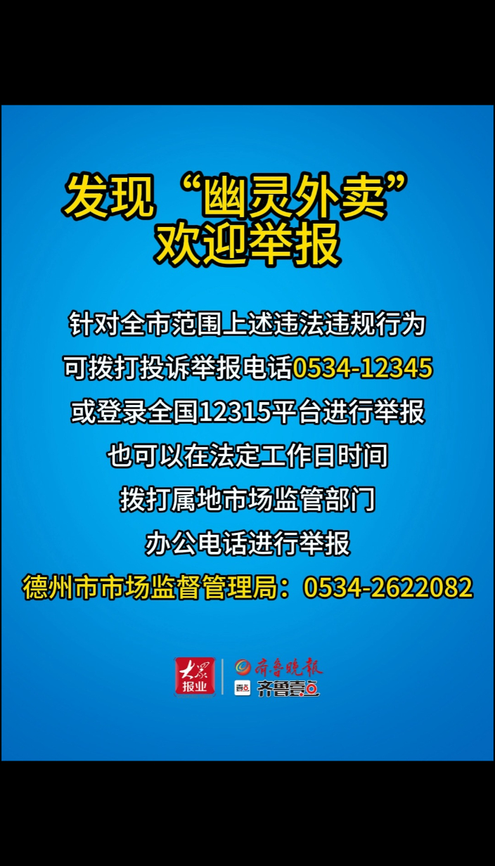 德州市市场监督监管局最新公告!鼓励群众举报“幽灵外卖”违法行为。(齐鲁晚报·齐鲁壹点 张雅宁)