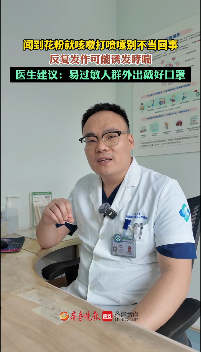 果然视频丨闻到花粉就咳嗽别不当回事!反复发作可能诱发哮喘齐鲁晚报·齐鲁壹点客户端 15:52原创春季花粉飘散,不少人一接触花粉就出现咳嗽、打喷嚏等不适,若反复发作可能进一步诱发哮喘,加重症状。青岛市第三人民医院呼吸与危重症医学科副主任、主治医师李全磊提醒,花粉季呼吸道过敏人群明显增多,建议易过敏体质外出时规范佩戴口罩,出现持续咳嗽等症状及时就医。 (齐鲁晚报·齐鲁壹点 曹婧雯)