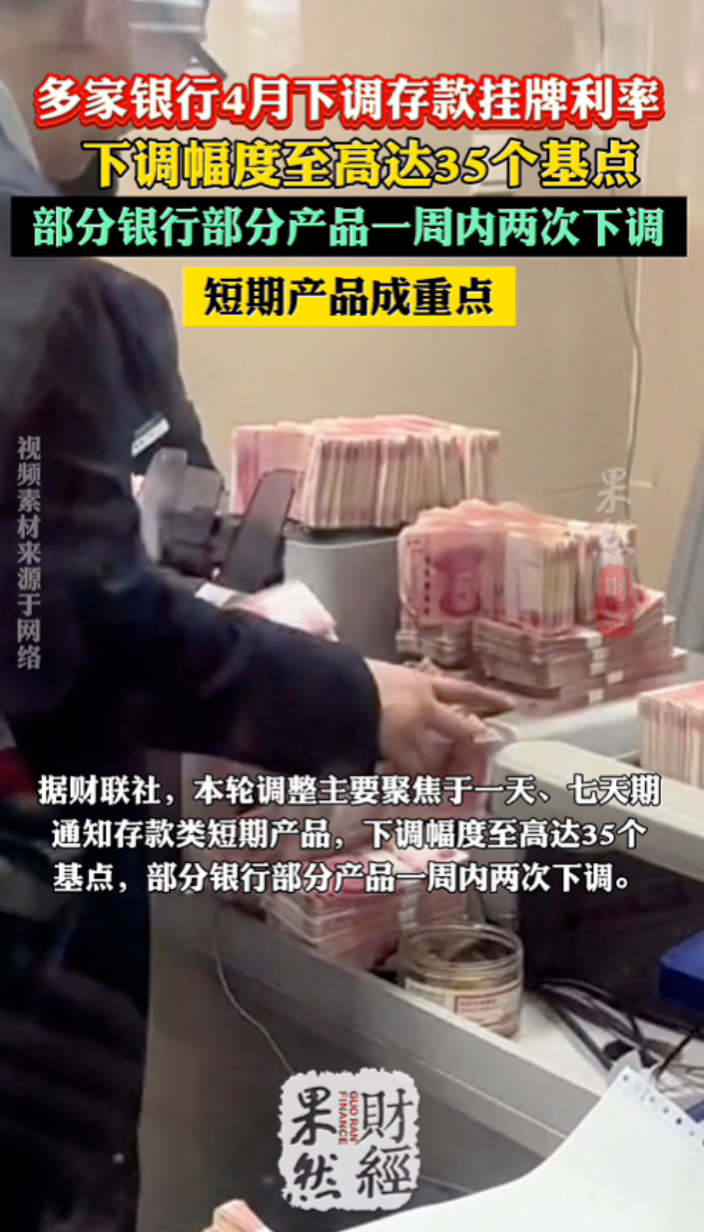 果然财经|多家银行下调存款挂牌利率,下调幅度至高达35个基点齐鲁壹点 | 16:51 原创齐鲁晚报·齐鲁壹点客户端 微信扫码扫码下载客户端二季度伊始,多家银行再度调整人民币存款挂牌利率。吉林银行、厦门银行、福建海峡银行等多家银行近日陆续公告,自4月1日起下调部分期限存款挂牌利率。据财联社,本轮调整主要聚焦于一天、七天期通知存款类短期产品,下调幅度至高达35个基点,部分银行部分产品一周内两次下调。