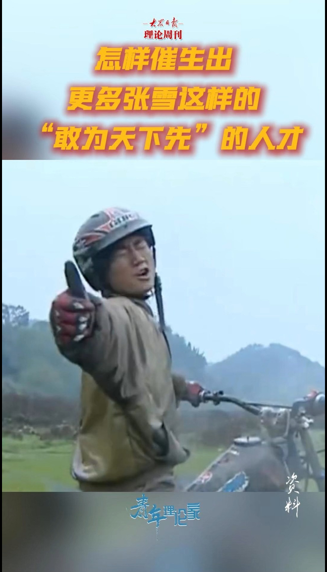 青年理论家·视频丨怎样催生出张雪这样的“敢为天下先”的人才? 10:00 原创大众新闻 微信扫码扫码下载客户端张雪机车夺冠,让很多人记住了那个草根出身、没有科班学历,却敢挑战世界顶级赛道的“孤胆英雄”。人们惊叹于他的“敢为天下先”,但更值得追问的是:这样的“敢”是从怎样的体系中成长起来的?我们能不能催生出更多张雪?(策划:任宇波 编辑:张浩 崔凯铭 刘祯周)