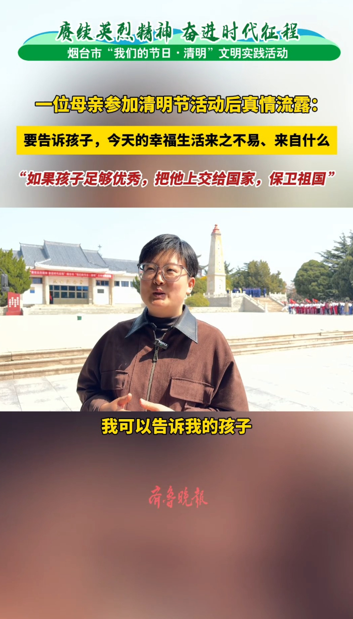 果然视频|幸福从何而来?一位母亲参加烟台清明节活动后真情流露齐鲁晚报·齐鲁壹点客户端 昨天18:33原创4月2日上午,烟台市在牟平区端午山革命烈士陵园举办“赓续英烈精神 奋进时代征程”清明文明实践活动。一位母亲参加清明节活动后真情流露:要告诉孩子,今天的幸福生活来之不易、来自什么,“如果孩子足够优秀,把他上交给国家,保卫祖国 ”。 (齐鲁晚报·齐鲁壹点 王琳 孙淑玉)