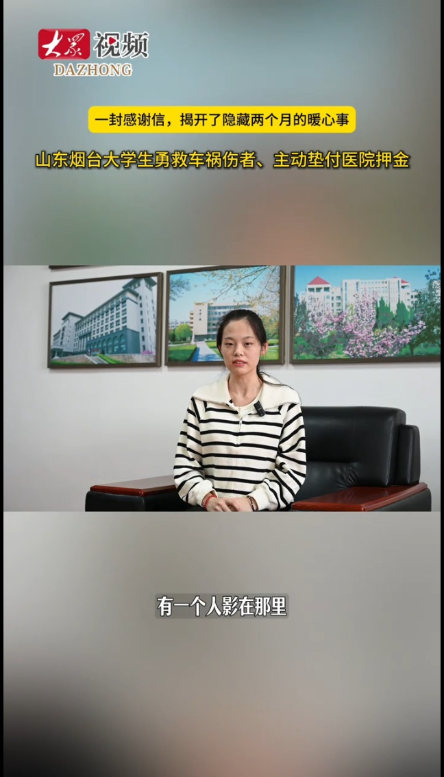 山东烟台大学生勇救车祸伤者、主动垫付医院押金大众新闻 | 19:27 原创大众新闻 微信扫码扫码下载客户端“感谢安悦同学的救命之情!她危急时刻沉着冷静、乐于助人,让我们全家深受感动……” 近日,山东工商学院金融学院收到一封感谢信,揭开了一件隐藏两个月的暖心事:该校学生安悦寒假期间勇救车祸伤者、主动垫付医院押金的事迹,就此被大家知晓。(大众新闻记者 邢金钰 通讯员 山彤彤)
