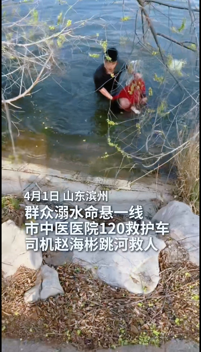 4月1日,来自滨州市中医医院的120救护车司机赵海彬危急关头跳河救人。