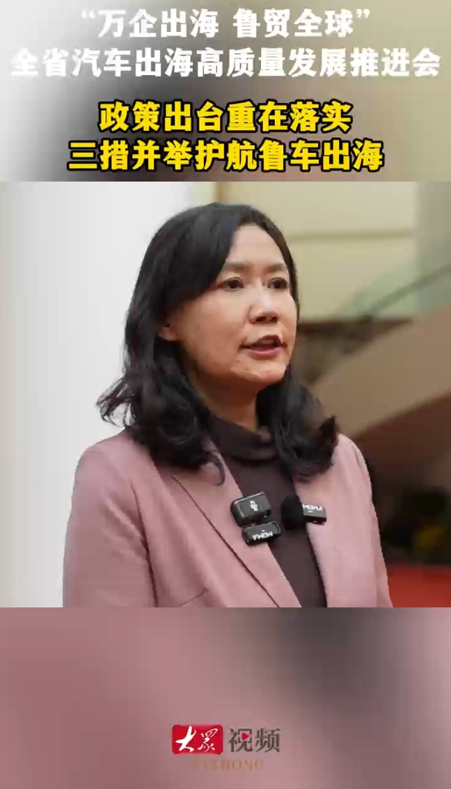 万企出海 鲁贸全球|马翎:精准施策强服务,全力护航山东汽车出海大众新闻 10:01现场4月2日,“万企出海 鲁贸全球”全省汽车出海高质量发展推进会在济南举办。会后,山东省商务厅对外贸易处处长、一级调研员马翎接受采访时说,政策关键在落实,山东商务厅三措并举:强化宣贯、平台赋能、跟踪问效,全链条服务企业,护航山东汽车出海。(大众新闻记者 张焕辰 孙源泽)