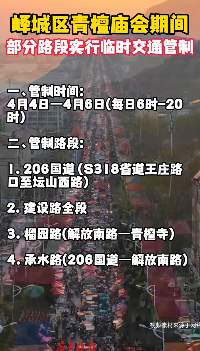 峄城区青檀庙会期间部分路段实行临时交通管制
