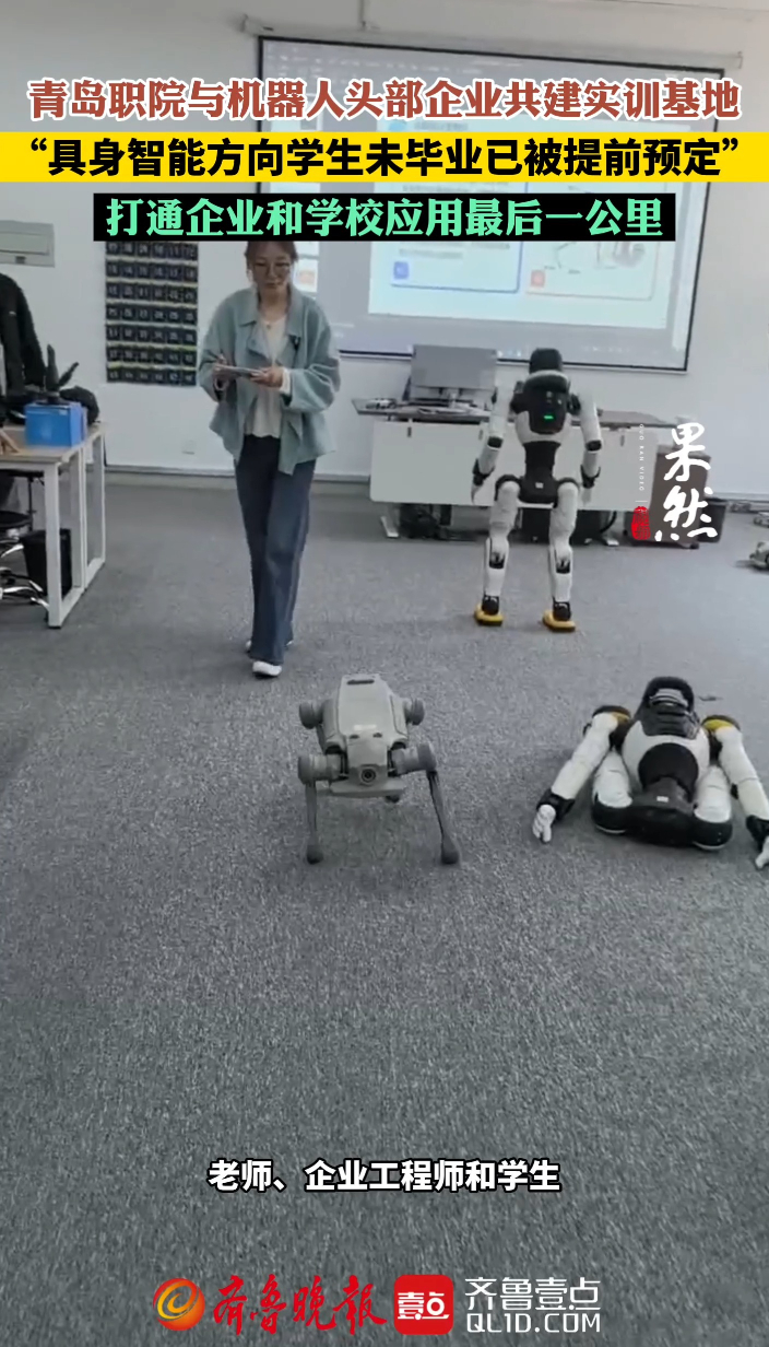 果然视频丨学生还没毕业就被企业提前预定,青岛职院这个专业很火齐鲁晚报·齐鲁壹点客户端 18:26原创青岛职业技术学院具身智能机器人实训基地自2025年12月启用以来,让越来越多的企业真实生产场景走进学校课堂,重构着具身智能机器人职业教育培养体系。4月2日,青岛职业技术学院信息学院副院长徐占鹏介绍,目前,学校已与海尔集团、青岛数据集团合作,开展订单式人才培养。像人工智能等专业学生还没毕业,已经被不少优质企业的预定。 (齐鲁晚报·齐鲁壹点记者 赵波 实习生 王颖馨)