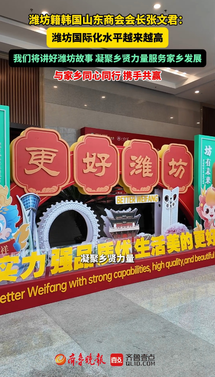 果然视频|韩国山东商会会长张文君:与家乡潍坊同心同行齐鲁晚报·齐鲁壹点客户端 昨天22:08原创4月3日,第五届潍坊发展大会现场,潍坊籍韩国山东商会会长张文君表示,潍坊与韩国地缘相近、人文相通、经贸往来密切。韩国山东商会作为连接中韩的桥梁,亲眼见证了潍坊对外开放的步伐越来越快、国际化水平越来越高。 齐鲁晚报·齐鲁壹点 田思敏 王佳潼 马小杰