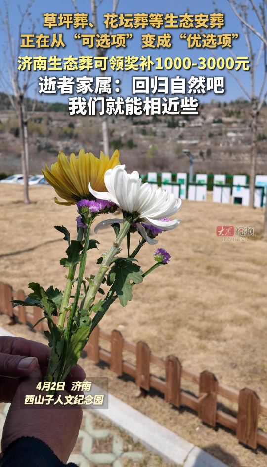 草坪葬、花坛葬等生态安葬正在从“可选项”变成“优选项”大众新闻 08:42原创近年来,随着殡葬改革的逐步深入,魂系生态、回归自然的生态葬方式,日益受到人们的关注和认可。在济南西山子人文纪念园,生态草坪葬让逝者真正“回归自然”——骨灰装入可降解容器,直接融入泥土,地面不留任何标志。家属可在纪念墙上留下姓名,随时前来祭扫。济南生态葬补贴政策可享受1000-3000元/位。(大众新闻记者 贾馨儒 策划 马玉峰 王磊)