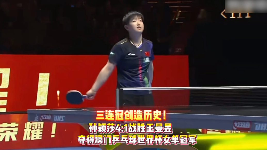 果然视频|孙颖莎4:1战胜王曼昱,连续三届世界杯夺得女单冠军齐鲁壹点 | 昨天21:52 原创齐鲁晚报·齐鲁壹点客户端 微信扫码扫码下载客户端4月5日晚,2026澳门乒乓球单打世界杯女单决赛,孙颖莎4:1战胜王曼昱,成为首位连续三届世界杯女单夺冠的运动员,创造了历史。(齐鲁晚报·齐鲁壹点 怀晓)