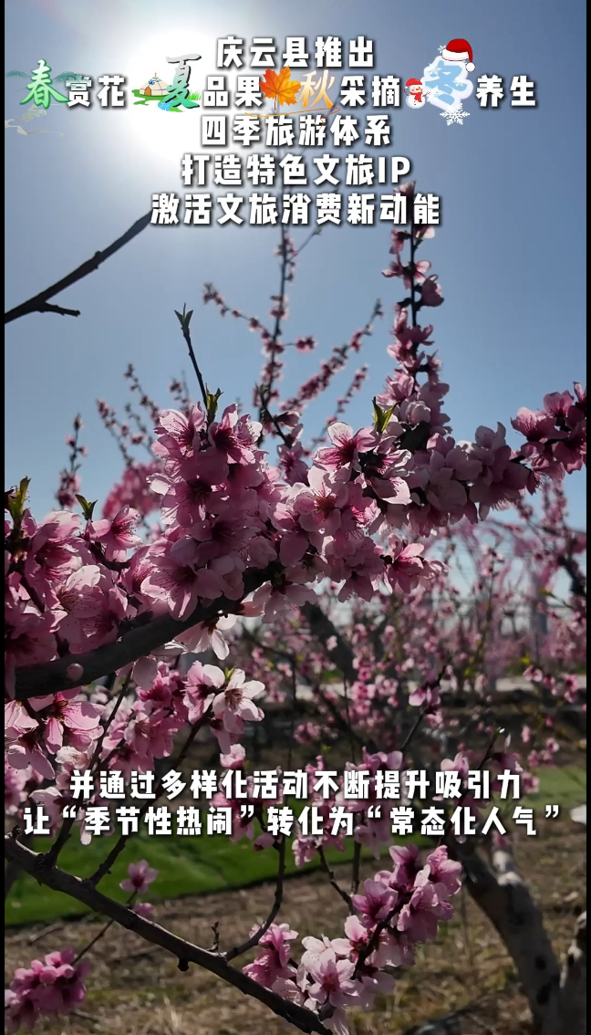 清明时节,庆云县尚堂镇南侯村百余亩桃园、千余株桃树竞争绽放。连日来,在消费者踏青、赏花、采摘等需求带动下,“赏花+”带动庆云文旅消费焕发新活力。