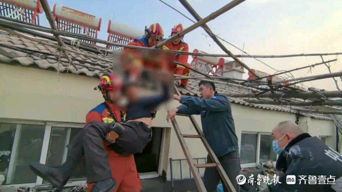 果然视频|老人突发病被困楼顶天台,众人合力成功援救齐鲁晚报·齐鲁壹点客户端 20:02原创4月1日,潍坊,一老人在楼顶修热水器时突然发病晕倒。接到求助,潍坊消防密州救援站立即到场处置。最终,众人合力将老人从楼顶天台转移至一楼安全地带,并将其交由120送往医院进行检查、治疗。 (齐鲁晚报·齐鲁壹点记者 尉伟 通讯员 仲承强)