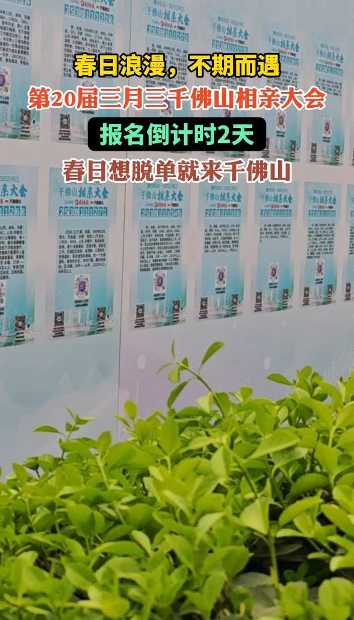 果然视频|春日浪漫,不期而遇!千佛山相亲大会报名倒计时2天 07:48 大众报业·齐鲁壹点 微信扫码扫码下载客户端第20届三月三千佛山相亲大会报名倒计时2天!报名时间:3月9日-4月8日,报名方式:壹点动心”小程序在线报名,举办时间:4月17日-20日。举办地点:济南千佛山景区东门内广场,这个春天快来寻找你的心上人吧!