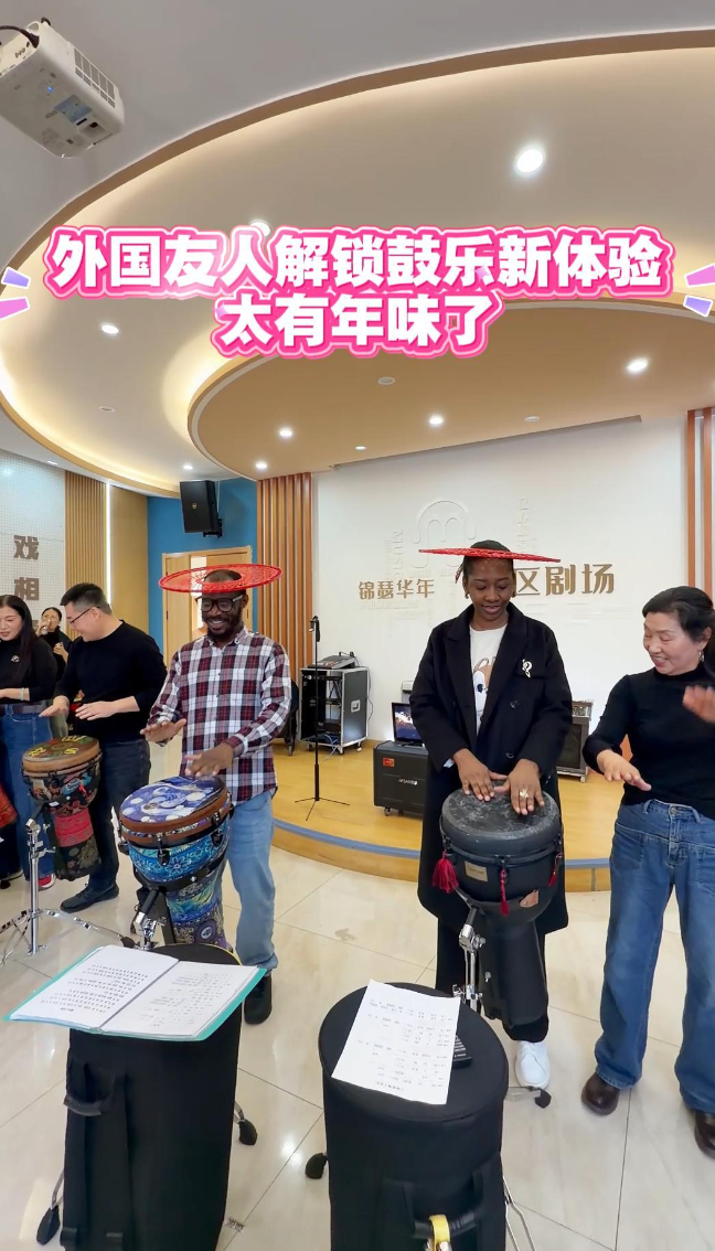 外国友人解锁东营鼓乐新体验,太有年味了