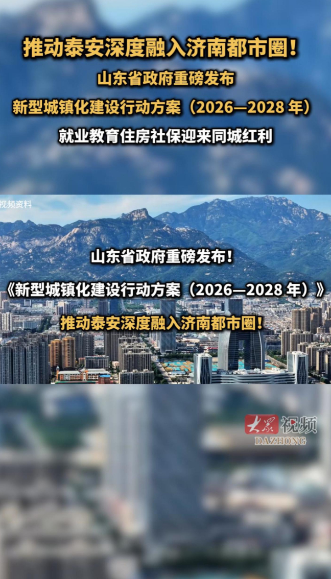 推动泰安深度融入济南都市圈!山东省政府重磅发布 新型城镇化建设行动方案(2026—2028 年) 就业教育住房社保迎来同城红利