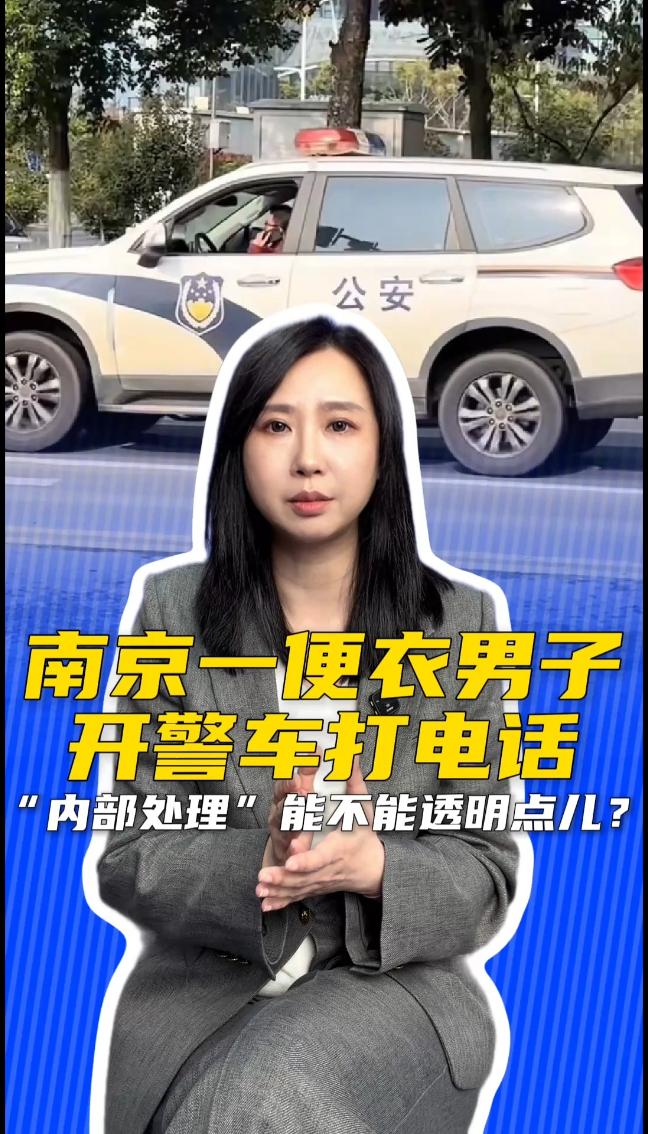 半岛时评|南京一便衣男子开警车打电话 “内部处理”能不能透明点儿?半岛新闻 | 昨天20:27 原创大众新闻·半岛新闻 微信扫码扫码下载客户端半岛时评|南京一便衣男子开警车打电话 “内部处理”能不能透明点儿?