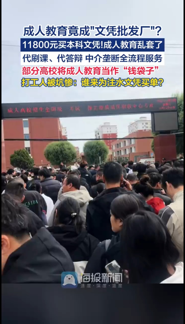 这样一来,成人教育成了“文凭批发厂”,学分注水,文凭贬值。真正想学东西的打工人被坑惨了,拿到的证书能有多少含金量?