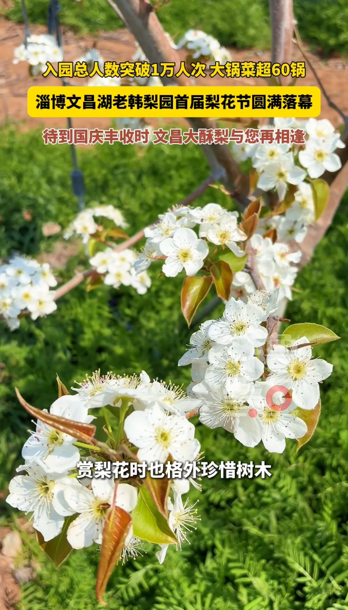 入园总人数突破1万人次,淄博文昌湖老韩梨园首届梨花节圆满落幕大众报业·齐鲁壹点 19:14入园总人数突破1万人次,大锅菜超60锅,淄博文昌湖老韩梨园首届梨花节圆满落幕,待到国庆丰收时,文昌大酥梨与您再相逢。
