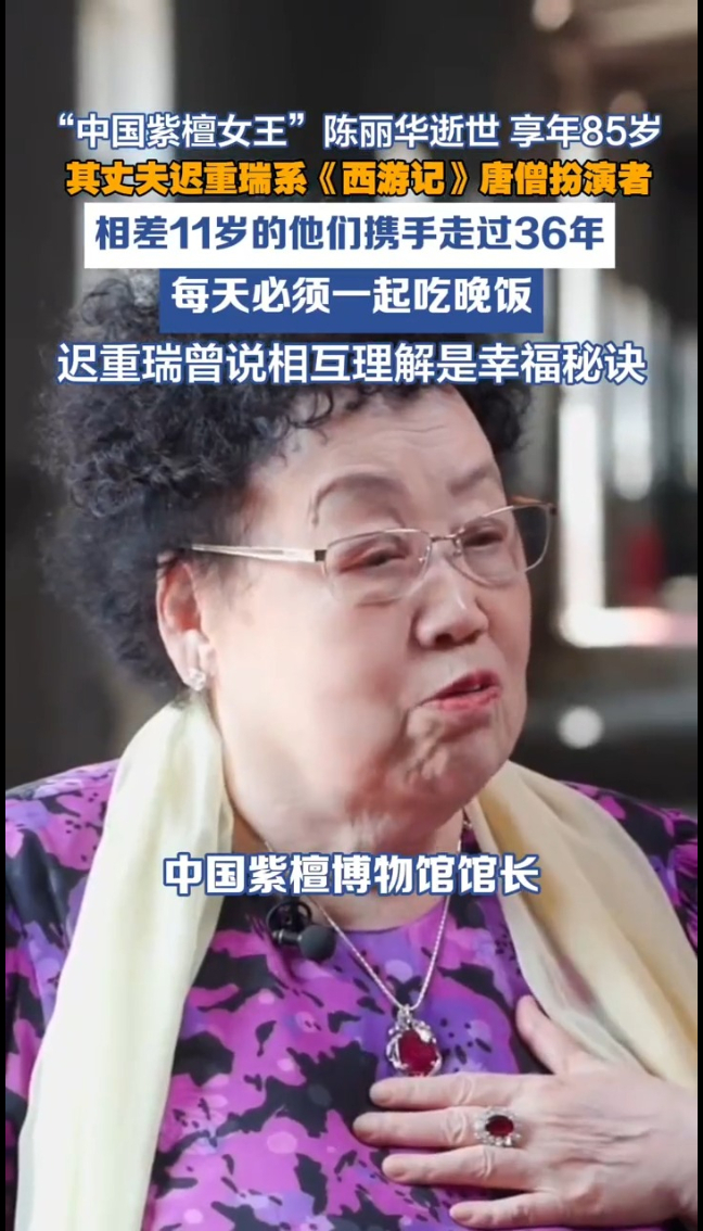 “中国紫檀女王”陈丽华逝世 其丈夫迟重瑞系《西游记》唐僧扮演者