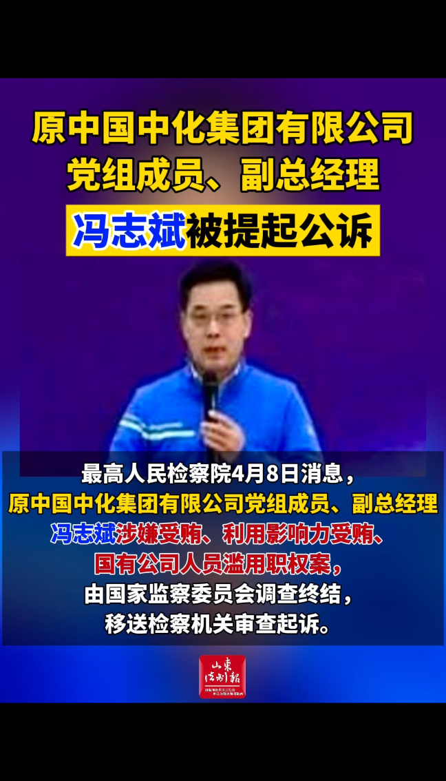 原中国中化集团有限公司党组成员、副总经理冯志斌被提起公诉