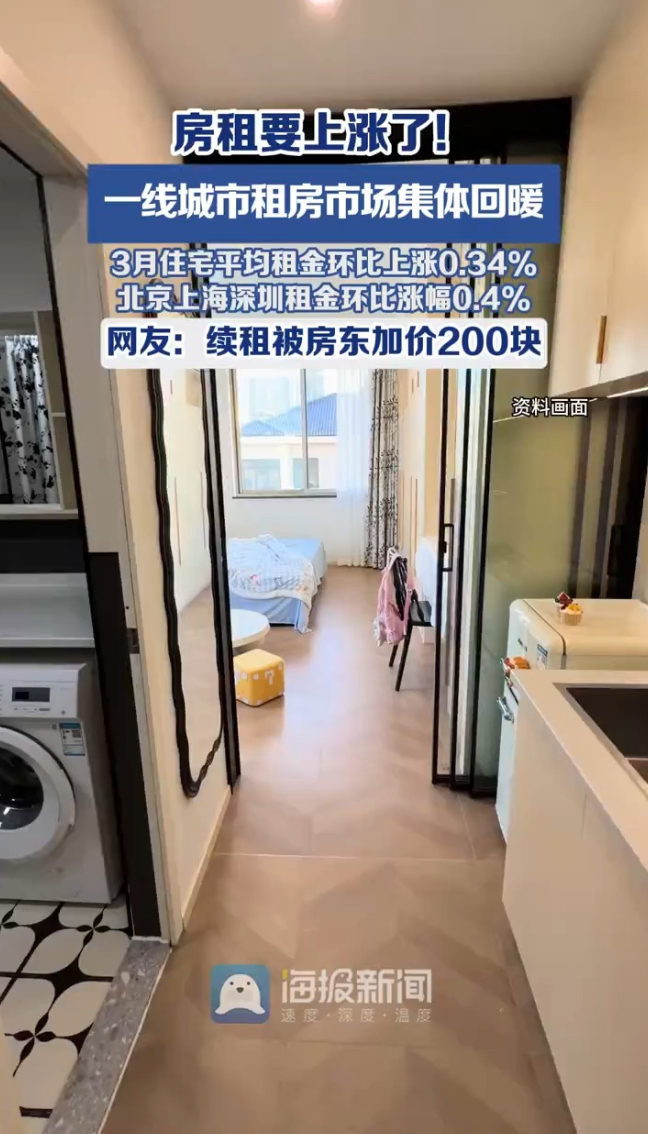 主播说丨房租要上涨了!一线城市租房市场集体回暖,3月住宅平均租金环比上涨0.34%