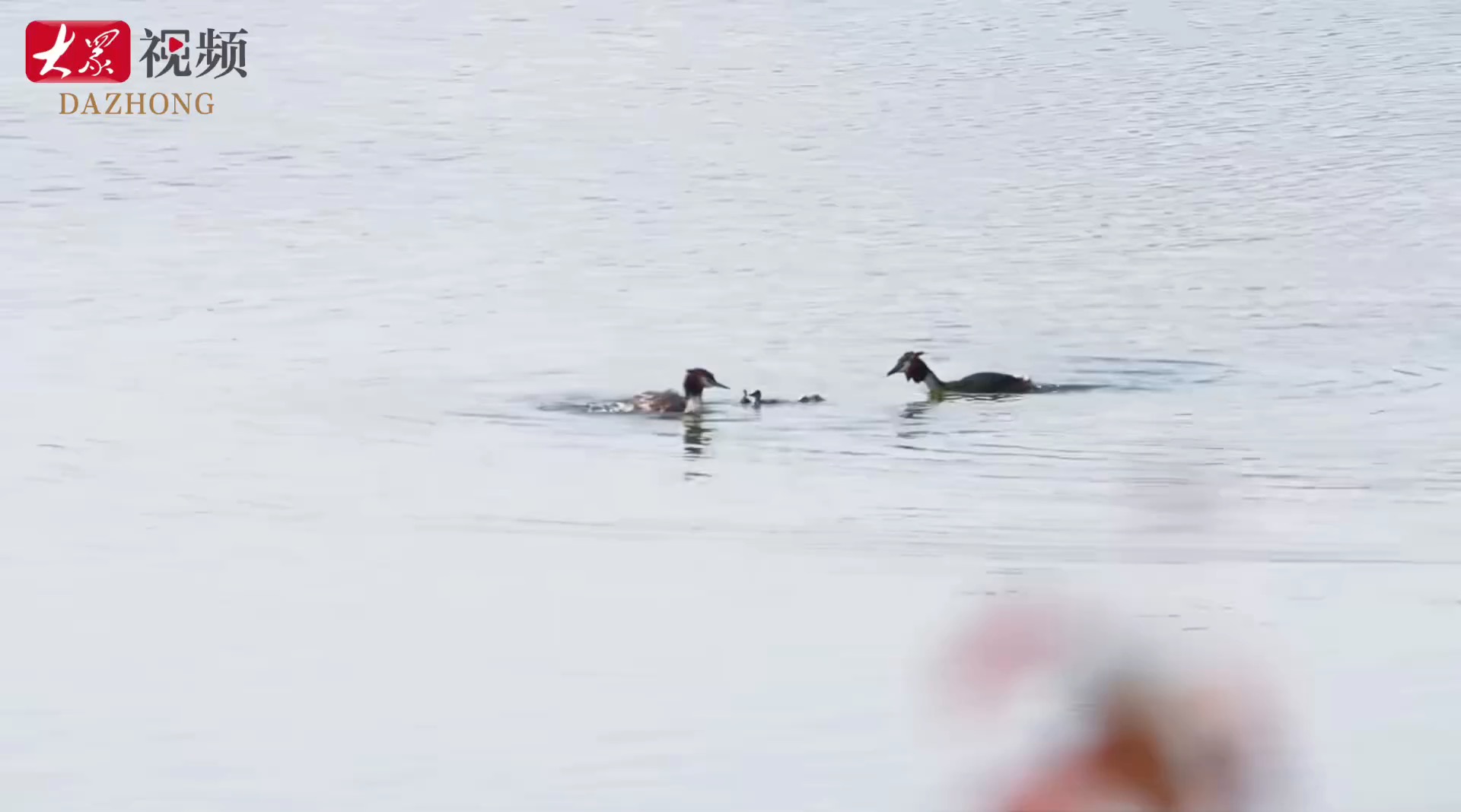 莒县沭河:凤头䴙䴘一家的幸福日常