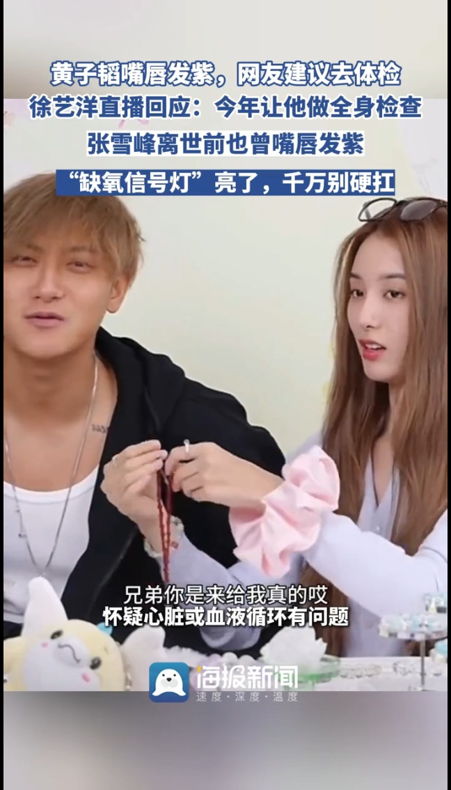 主播说丨黄子韬嘴唇发紫,网友建议去体检 “缺氧信号灯”亮了,千万别硬扛