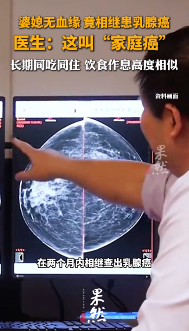 婆媳无血缘 竟相继患乳腺癌 医生:这叫“家庭癌” 长期同吃同住 饮食作息高度相似