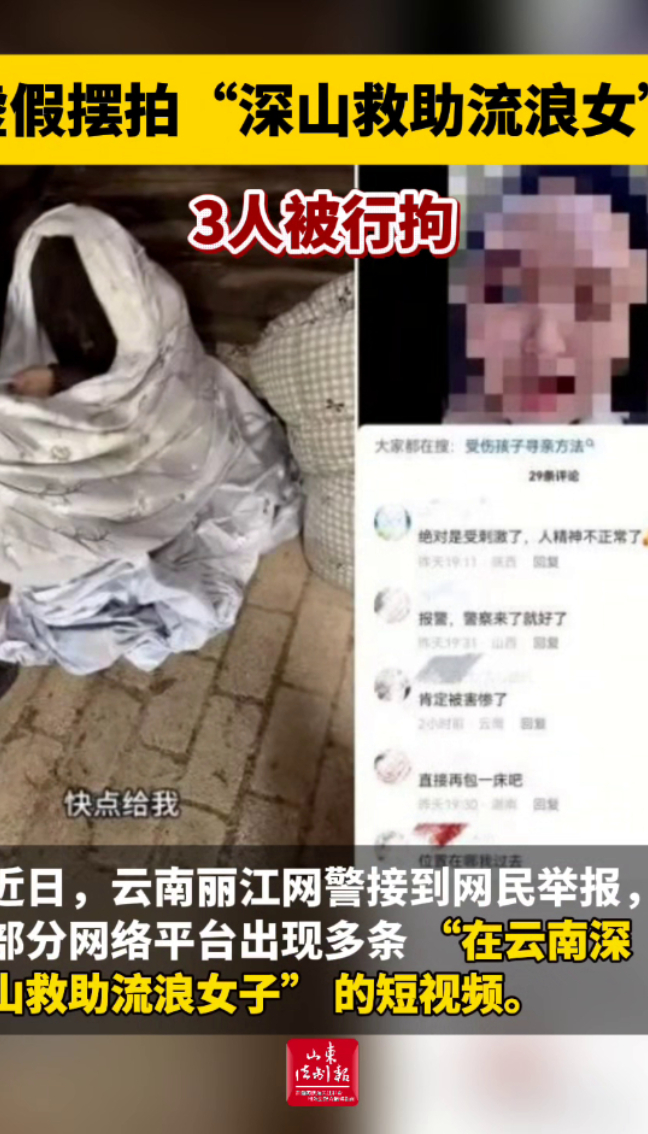虚假摆拍“深山救助流浪女”,3人被行拘