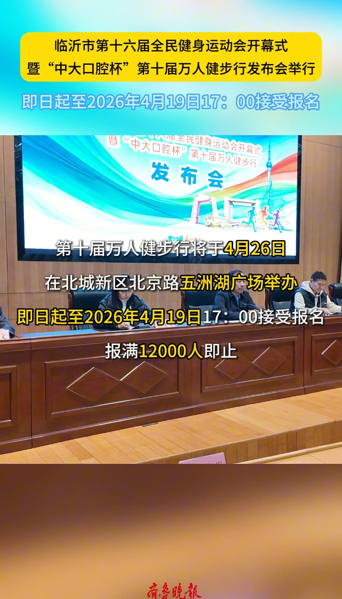 果然视频|“中大口腔杯”第十届万人健步行启动报名大众报业·齐鲁壹点 15:294月9日上午,临沂市第十六届全民健身运动会开幕式暨“中大口腔杯”第十届万人健步行发布会举行。记者从会上了解到,第十届万人健步行将于4月26日在北城新区北京路五洲湖广场举办,即日起至2026年4月19日17:00接受报名,报满12000人即止。 (齐鲁晚报·齐鲁壹点 徐昊囡)