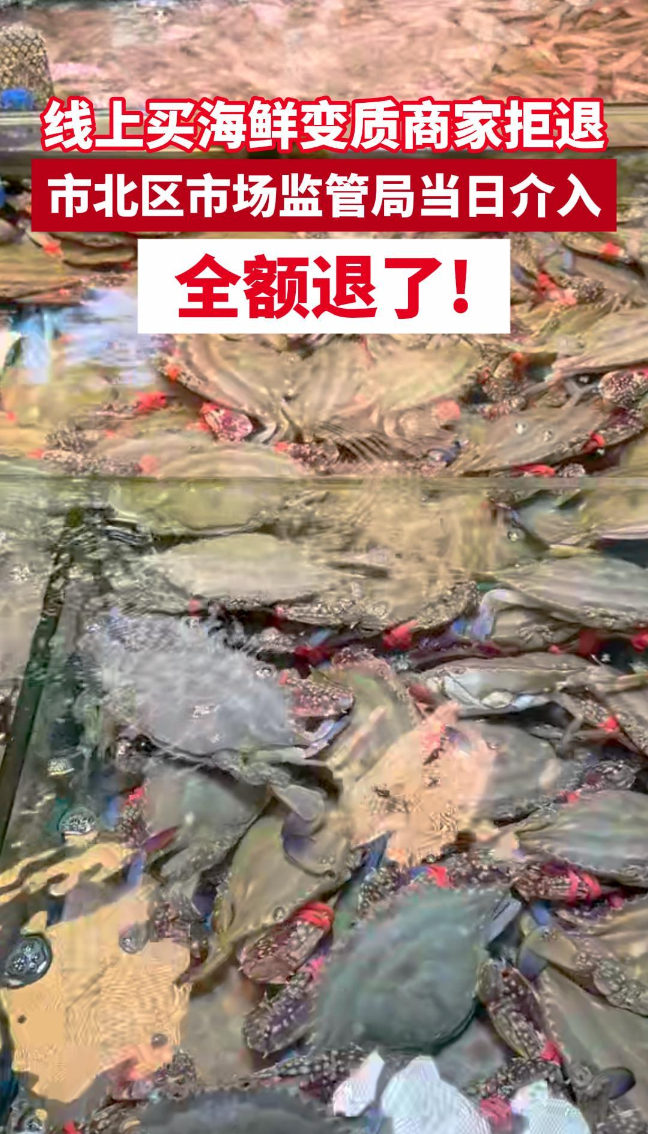 线上购海鲜变质遭商家拒退 市北区市场监管局当日介入:全额退款!